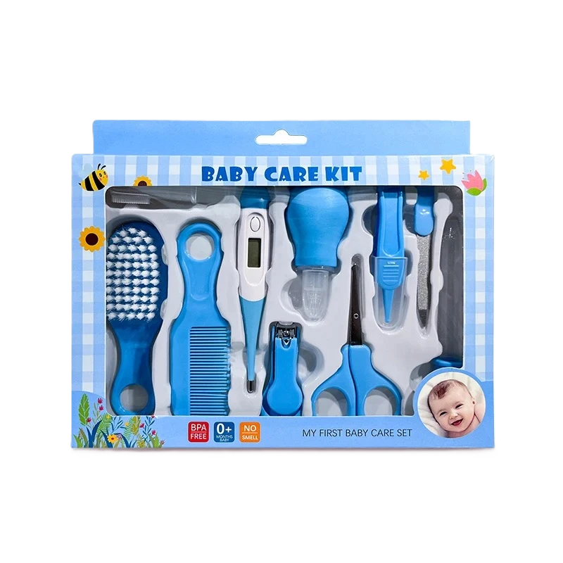 The product shown is a Baby Care Kit. It is a 10-in-1 set of healthcare and grooming tools designed for newborns and toddlers.